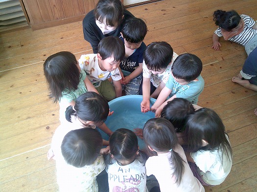 2023年05月19日 氷水あそび 3歳児 つき 未分類 カメラの紐が写ってしまいすみません笑 氷水であそびました。 手を入れるとすぐに「つめたーい」と友だちと笑い合ったり、「こっちのほうがおおきいよ」と氷の大きさを比べたりして楽しんでいました。 これからも暑さ対策をしながら、暑い夏をこどもたちと楽しんでいきたいと思います。 一覧へ戻る