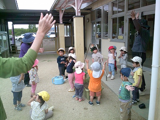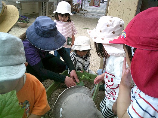 2023年05月25日 大きくなあれ 2歳児 にじ きゅうりの苗を植えました。 きゅうりの苗持ってきたよ~ プランターの土に穴を掘って苗を植えました。 優しく土をかけるよ 大きくなあれ 植えた後にはみんなで「大きくなあれ」の踊りをしました♪ みんなで水やりしながら、生長を楽しみにしたいです。 無事にきゅうりが実りますように…。 一覧へ戻る