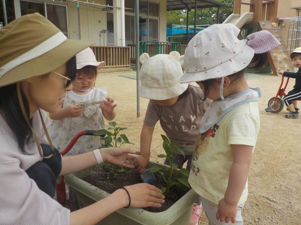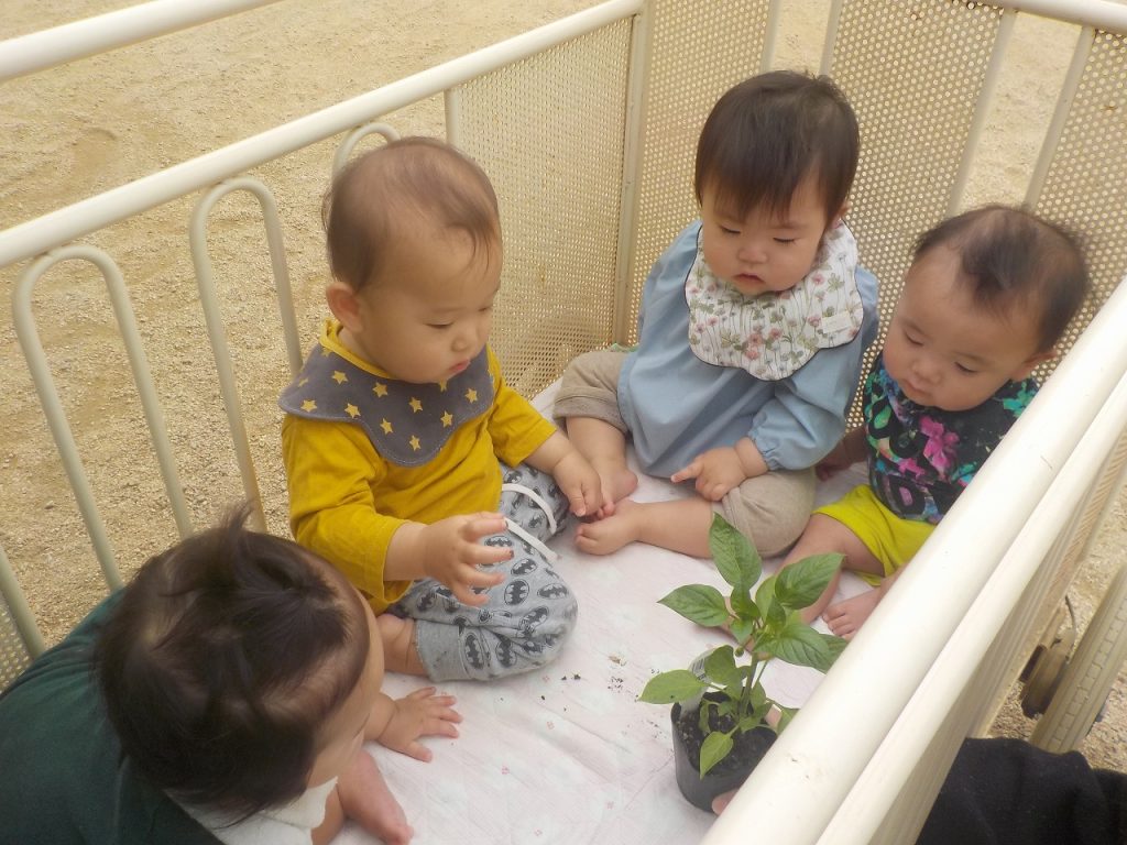 2023年05月29日 ピーマンの苗を植えたよ 0歳児 はな 1歳児 ゆき ピーマンの苗を植えました。ピーマンの苗やスコップにとても興味津々でした。 ゆき組さんが植えているのを散歩車から覗いてみていました。 元気なピーマンができるといいね! 一覧へ戻る