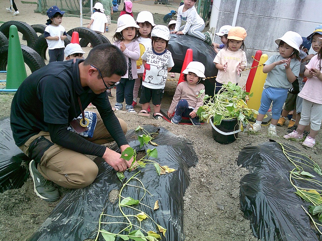 2023年05月26日 さつまいもの苗を植えました。 2歳児 にじ 秋に収穫できるさつま芋の苗を植えました。 さつまいもの苗を植えているのをがんばれーと応援してくれました。 大きく育ってお腹いっぱい食べられるといいな。 一覧へ戻る