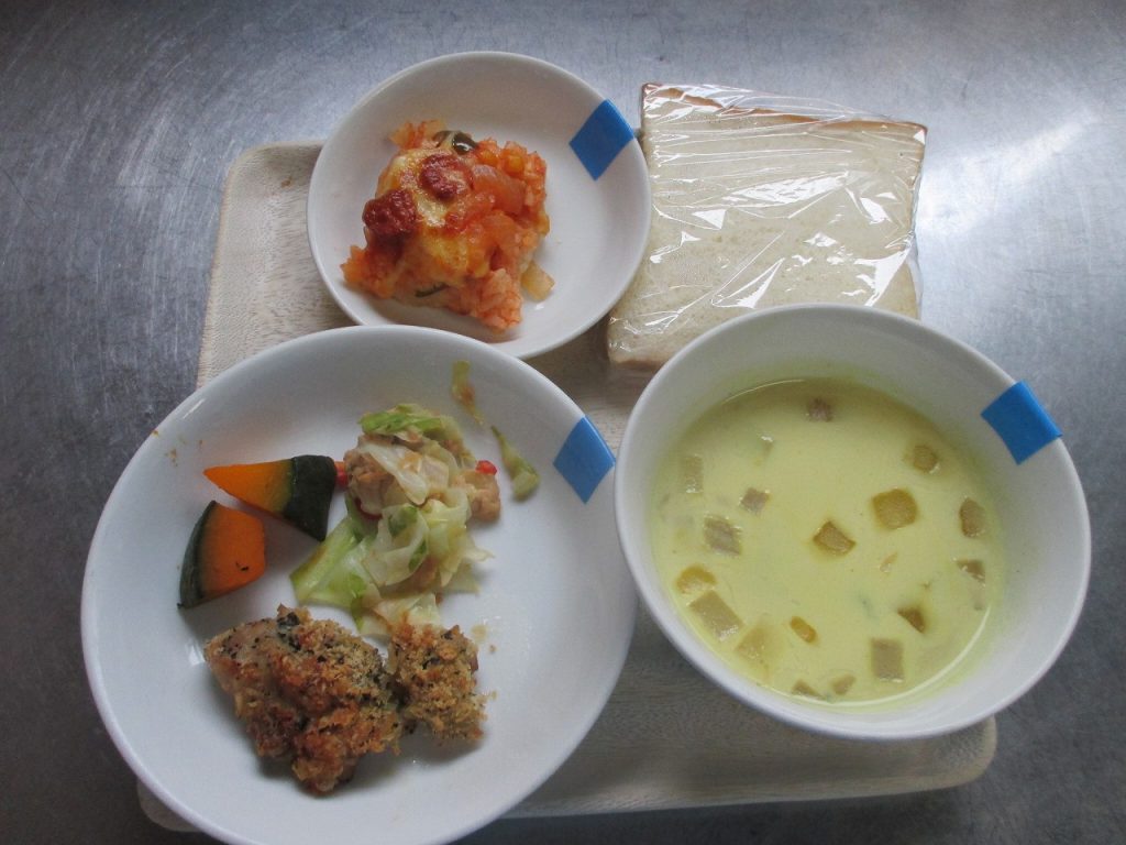 2023年06月01日 給食室(5月30日の給食、おやつ) 給食室 昼食 ・食パン ・鶏肉の香草焼き ・かぼちゃの甘煮 ・ツナサラダ(マヨポン味) ・カレー風味シチュー おやつ ・ライスピザ 『ツナサラダ』の味付けは、 手作りのマヨポンでした。 ポン酢とマヨネーズ、意外とあいます。 『カレー風味シチュー』は、 豆乳を使用しているのですが、 コンソメ、白みそ、カレー粉が入ると、食べやすくなります。 一覧へ戻る