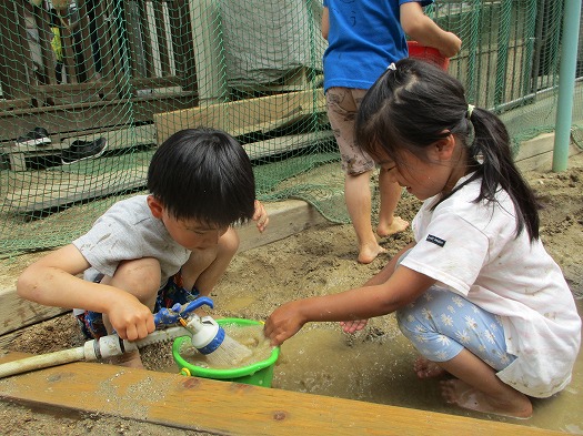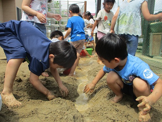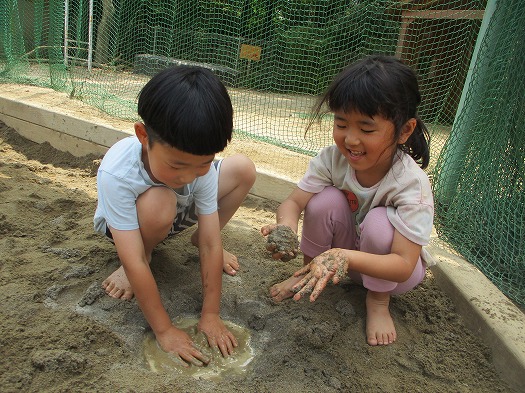 朝から「先生、どろんこする?」とウキウキのこどもたち。