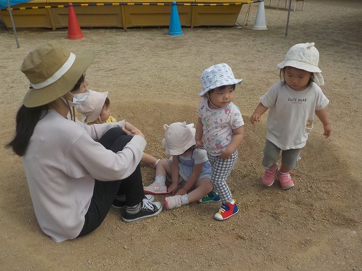 2023年07月03日 大きな穴 1歳児 ゆき 園庭に大きな穴ができていて、なんだろうと気になっていたこどもたち。 保育者が「お風呂みたーい!」と言うと その言葉を聞いて砂の山を登り、穴の中に入ったり、座ったりしていました。 一覧へ戻る