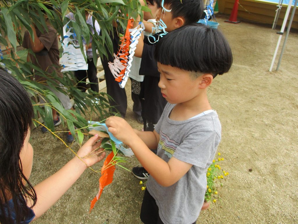 2023年07月07日 飾りをつけたよ 5歳児 そら 笹の会がありました。 老人クラブの方が笹を持ってきてくださり、自分たちで作った飾りをつけました。 その後はそら組からお礼のうたをプレゼントしました。 緊張していましたが、きれいな歌声が響きました。 一覧へ戻る