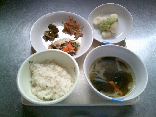 2023年09月20日 給食室(7月6日の給食、おやつ) 給食室 昼食 ・麦ごはん ・豆腐の中華煮 ・きんぴらこんにゃく ・中華きゅうり ・わかめスープ おやつ ・ずんだ餅 今日のかみかみメニューは、 『きんぴらこんにゃく』です。 ごぼうを入れることでかみかみになっています。 おやつは、『ずんだ餅』、新メニューでした。 ずんだは、枝豆、豆乳、砂糖をミキサーにかけ、 鍋に移して煮たたせて作りました。 旬の野菜を使っています。 一覧へ戻る
