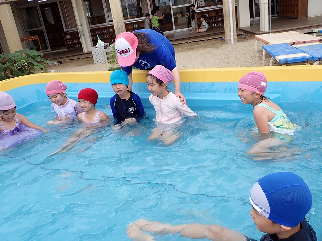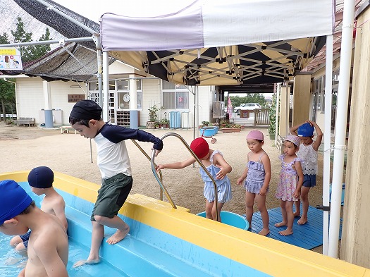 2023年07月13日 気持ちいいね 5歳児 そら プールに入りました。朝から「今日プールある?」と聞くこどもたち。 ゆっくり階段を降ります。 プールに入ると「冷たい」、「気持ちいい」「楽しい」といろいろな声が。 ワニやうさぎ、かえるになりきったり、トンネルを通ったり。 これからのプールを楽しみたいと思います。 一覧へ戻る