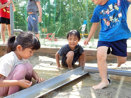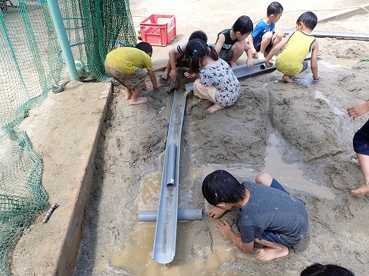 2023年07月06日 パイプを使って 5歳児 そら パイプを使ってあそびました。 友だちと協力してパイプをたくさん繋げて、道を作ります。 道ができると、水が流れ、「おー」と嬉しそうなこどもたち。 そして、いろいろなところに大きな水たまりができるため、気持ちよさそうに転んだり、座ったりする姿もありました。 一覧へ戻る