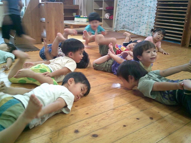 2023年07月14日 みんなでせーのっ!(にじます) 2歳児 にじ 絵本を貸りた後保育室に戻ると、こどもたちから「リズムしたいー!」とリクエストが。 カニやうさぎ、カエルにカメ、馬などたくさん楽しんでいました。 給食の時間が近づいていて「次のでおしまいにしようね」と伝えていましたが、終わった後も「もういっかい!もういっかいだけ!」と懇願されました…。 一覧へ戻る