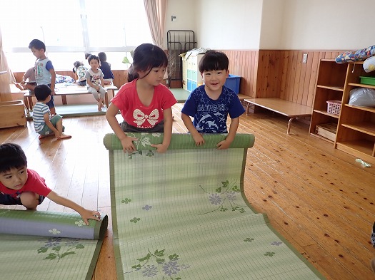午睡後、自分たちでござを片付ける姿をパチリを撮りました