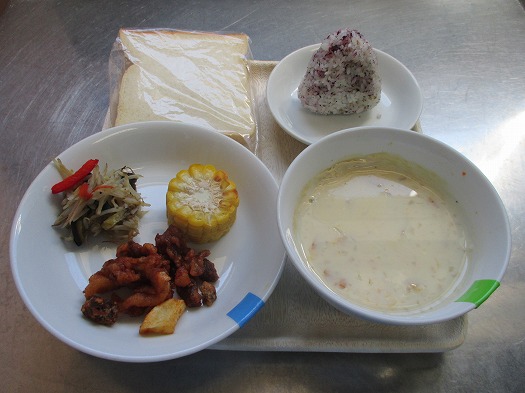 2023年08月10日 給食室(8月1日の給食、おやつ) 給食室 昼食 ・食パン ・豚肉のマリアナソース ・夏野菜ソテー ・茹でとうもろこし ・かぼちゃの豆乳スープ おやつ ・ゆかりおにぎり 『夏野菜ソテー』には、 旬の野菜、ズッキーニ、なすが入っていました。 もやしで少しかさまししていますが、 コンソメ味で食べやすくなりました。 『茹でとうもろこし』は、 今が旬で、かみかみメニューとしてみんなかぶりついて食べました。 スープにも旬の食材かぼちゃが入っていました。 一覧へ戻る