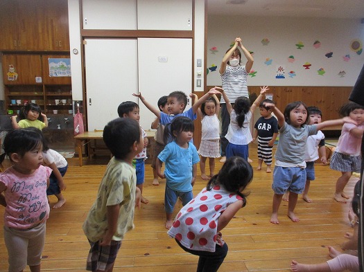 みんなで楽しんで身体を動かして職員の動きを真似っこしていました♪