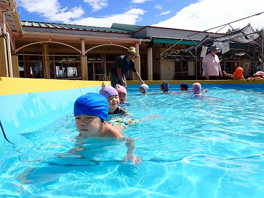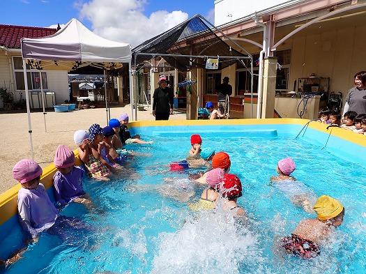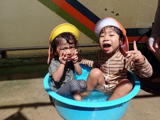 プールや水あそびが大好きな子が多く、今年度は最後と知ると「えー」と悲しそうでしたが、時間いっぱいみんなで楽しみました。