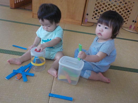 穴に入ると嬉しくて、保育者の顔を見てにっこり。