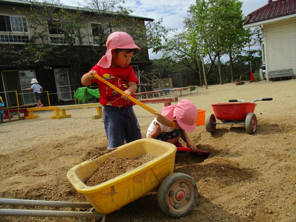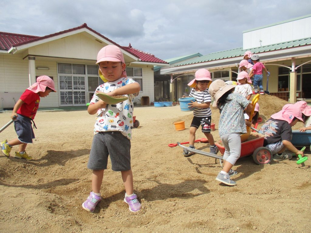 2023年09月08日 工事中 3歳児 つき 園庭にある2つの土山を1つにするためスコップで砂を掘ることに夢中なこどもたち。 掘る係、運ぶ係、踏む係などそれぞれに分かれて工事が行われていました。 たくさんのこどもたちが協力し、1つの大きな土山になってきています。 一覧へ戻る