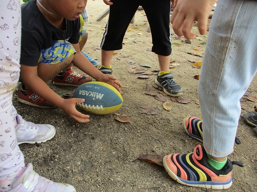 朝から学童のタッチラグビー用のボールを借りて、ラグビーをしました