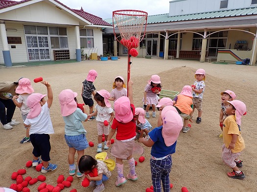 カゴが高く「はいらない」などと言っている子もいましたが、入るまで諦めずに挑戦するこどもたち。
