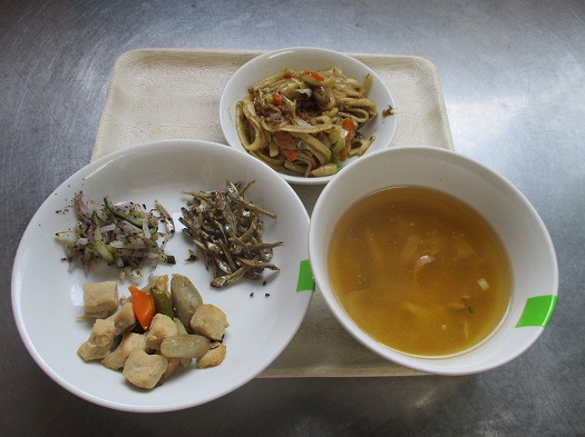 2023年09月21日 給食室(9月21日の給食、おやつ) 給食室 昼食 ・ごはん ・筑前煮 ・田作り ・もやしのゆかり和え ・きのこのみそ汁 おやつ ・焼きうどん 今日のかみかみメニュー『田作り』は、 煮干しを焼いて甘辛のたれといりごまをからめただけの簡単なものですが、 よく食べていました。 これからが旬のきのこが入った『きのこのみそ汁』には、 舞茸とえのきが入っていました。 免疫力アップにもつながりますので、 旬の食材、「きのこ」を食卓に取り入れてみてはいかがでしょうか。 一覧へ戻る