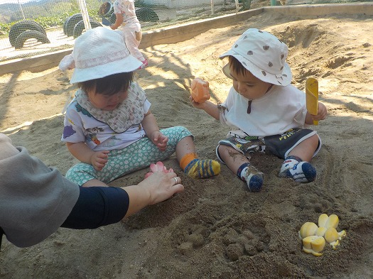 最初は、砂の感触に驚いて涙が出ましたが、遊んでいるうちに少しづく慣れてきました。またしようね!