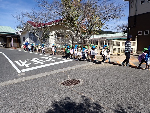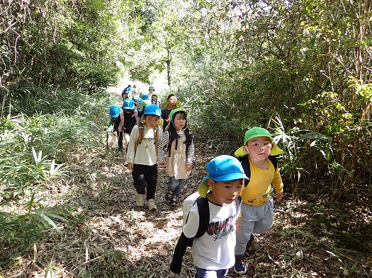 そら組とほし組で初めて、裏山へ散歩に行きました。