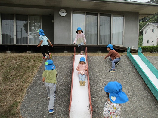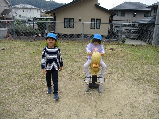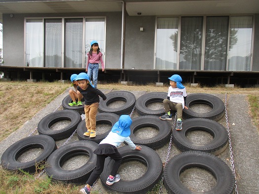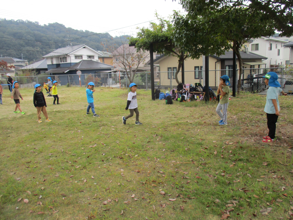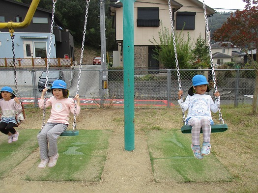 2023年10月26日 星の公園 5歳児 そら 微妙な天気でしたが、出発するときには雨がやんでいたので、星の公園まで散歩に行きました。 星の公園にはブランコやすべり台、タイヤが。 ブランコにはベルトもついてあり、着いた瞬間「あのブランコなに?」と。 タイヤではタイヤ跳び、広場ではだるまさんがころんだなどを楽しみました。 お弁当の用意ありがとうございました。 一覧へ戻る