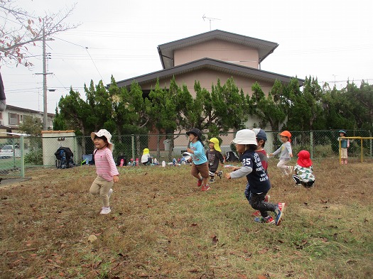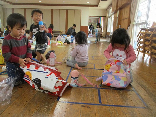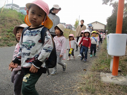 2023年10月23日 健脚活動 10月! 2歳児 にじ 今回の健脚活動は、今までよりもちょっぴり遠く…。 つき組さんと一緒に手を繋いで歩いて行きました。 つき組さんよろしくね! 公園には、ブランコとすべり台があり、遊具で遊んだり、追いかけっこをしたり、虫探しをしたりして遊びました。 なんと、帰りもつき組さんに手を繋いでもらって、保育園まで帰ってきました。 お弁当は園庭で食べようと思っていたのですが、少し雨が心配だったので、ホールで食べました。 自分で準備できるかな? お弁当ありがとうございました!みんなとても嬉しそうに食べていました。 一覧へ戻る