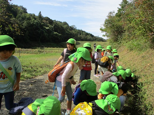 こどもたちは、つき組にあげるんだ、家に持って帰るんだとはりきってあぜ道に落ちているどんぐり拾いに精を出していました