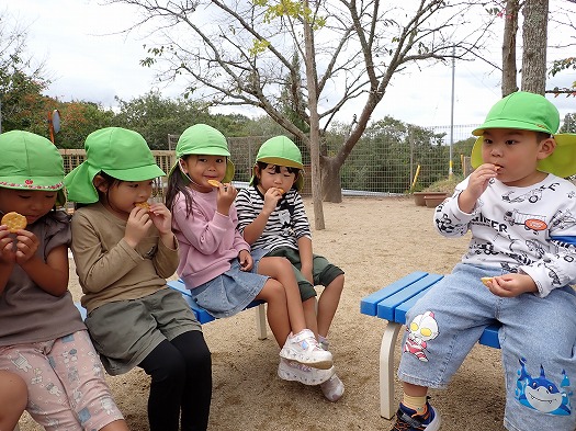 運動会でそれぞれ頑張ったこと、おうちに人からどんなことを言われたのかな、など話をしながら、運動会後のお疲れさんパーティをしました