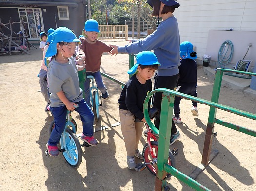 そら組になって初めての一輪車。