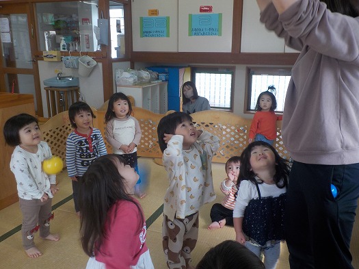 落ちてくるボールを見て「うわぁー」と笑い声が部屋中に響き渡りました。