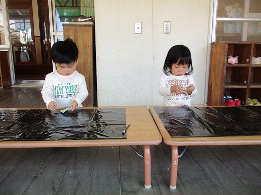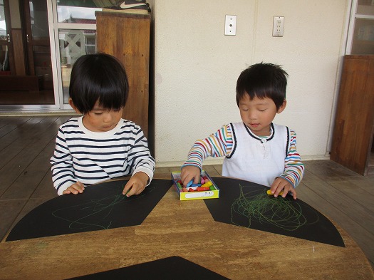 クレヨンで色を付け…帽子に。
