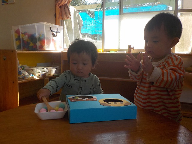 2023年10月30日 スプーンですくうの楽しいな 0歳児 はな 食事の時に上手にすくって食べられるようにおもちゃを使ってしています。 あそびながら、給食でスプーンを使う時すくって食べることができるようにしたいです。 すくってお皿に乗せるのが楽しくて何度もしています! 一覧へ戻る