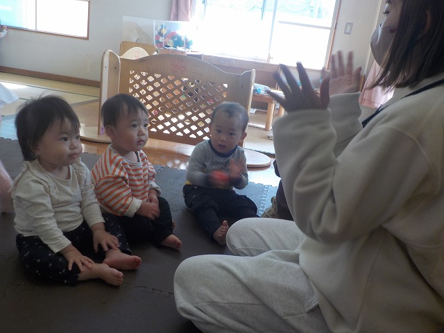 歌や手遊びをすると、自然と集まって、手をパチパチしたり身体を揺らしたりして楽しんでいます!