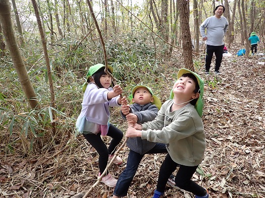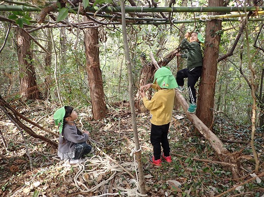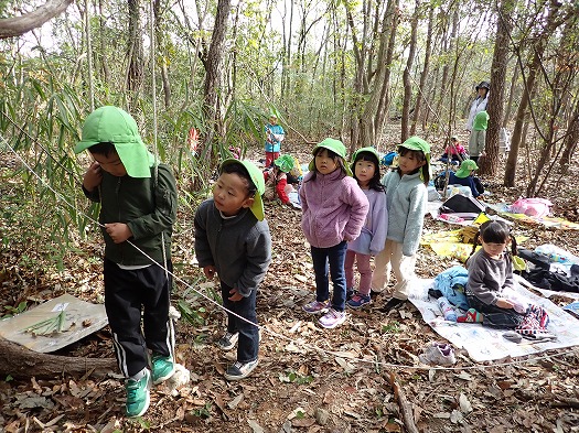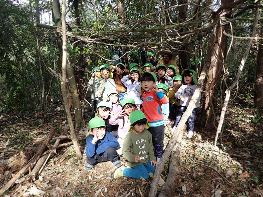 2023年11月16日 ほし組 お泊り保育 No.1 4歳児 ほし おしらせ 速報です 壮行会ならぬ 始まりの会です 園長の花房が秘密基地建設会社社長となり、ほし組のこどもたちに 秘密基地の建設依頼がありました 現場監督として、土屋が任命され、さぁ出発 わくわくの森に到着後は、せっせと基地づくりにはげみました 完成です 26名全員がギューギューに入れば入れる秘密基地 また明日も作りに行くぞ 以上、現場監督より 一覧へ戻る