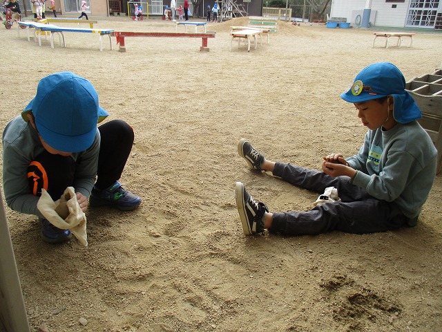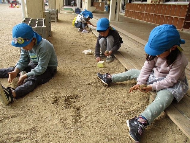 2023年11月17日 そら組のブーム 5歳児 そら 今、そら組では泥だんごがブームのようです。 自分達で一から作り、さら砂を繰り返しかけます。 その後、布を使ってこすりピカピカの泥団子をつくっています。 一覧へ戻る