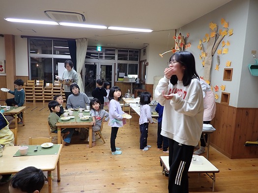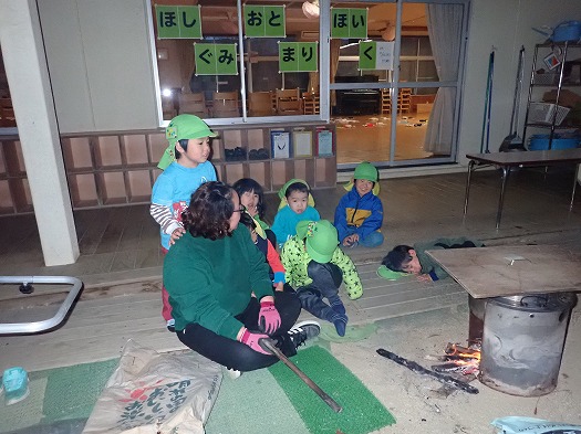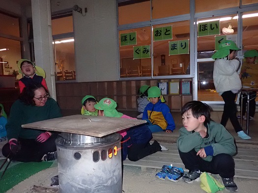 2023年11月17日 ほし組 お泊り保育No.2 4歳児 ほし おしらせ 夕方から就寝までの様子 地域の方が柿をプレゼントしてくれました たまたまの奇跡です 地域の方には、お泊り保育をしているってことを伝えてはいないのですが、ちょうど偶然に……持って来てくれました 持参してくれたお米を大きな羽釜で炊きました お米の味は、最高でした ゆき組職員の下山が味見して、GOODのサインをもらいました 一覧へ戻る
