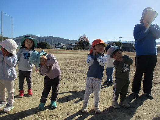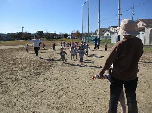 保育園とは違う広さに、開放感たっぷりだったようで、あっという間に遠くまで走って行ってしまうこどもたち。「お~い。帰ってきて~」と声を掛けると、みんなちゃんと帰ってきました。偉い!!