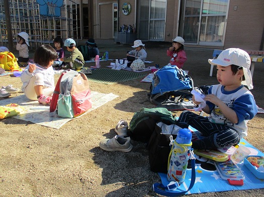 グランドに着いて、ちょっぴりおやつを食べてから、広いグランドで遊びました。