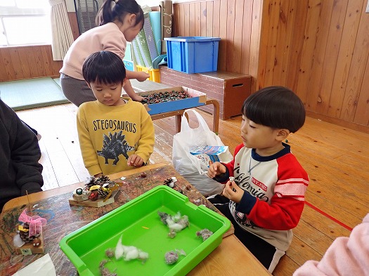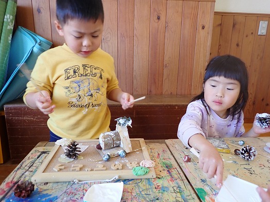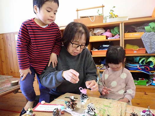 2023年12月15日 お得意の製作 4歳児 ほし 今までずっと拾っていたどんぐりや保護者からいただいた松ぼっくりを使って製作をしました 製作活動に意欲満々なほし組は、一時間以上も部屋で木工ボンドを使ってオリジナル感あふれる作品をつくりました。 一覧へ戻る