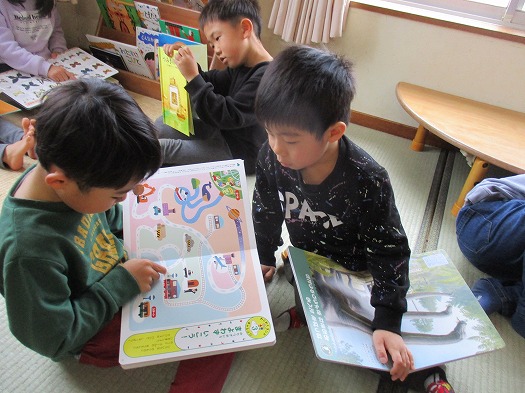 2023年12月18日 新しい○○ 5歳児 そら 雁から新しい絵本を受け取りました。 新しい絵本を受け取る前にみんなで けんかをしない、取り合いをしない、片付けをする という約束をしました。 動物の絵本があったり、迷路の絵本があったり。みんな見入っていました。 一覧へ戻る