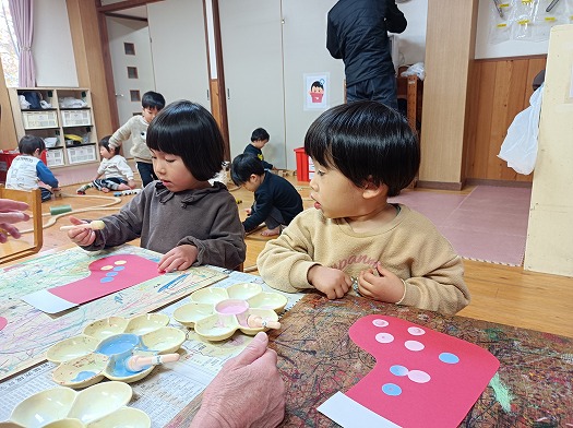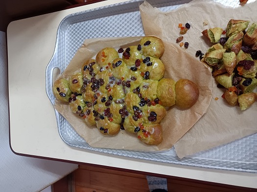 2023年12月25日 メリークリスマス🎄 2歳児 にじ 保育室に大きなツリーを作り、長靴を飾ったり お家に持って帰るツリーを作ったりと クリスマスを楽しみに、準備していました。 誕生会&クリスマス会の日のおやつは、もみの木の形のちぎりパン! 保育園に、サンタクロースも来てくれて… 楽しさいっぱいのクリスマスでした♪ 一覧へ戻る