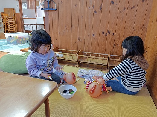 寝ている赤ちゃんの側には、起きてから食べるご飯も用意してありました。