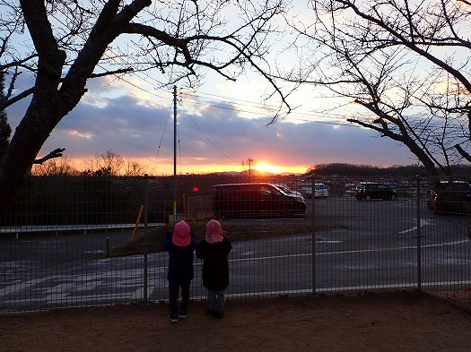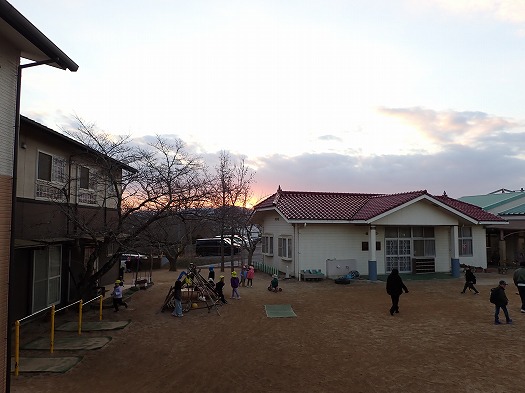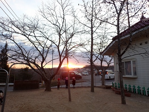 2023年12月28日 よい年を 0歳児 はな 1歳児 ゆき 2歳児 にじ 3歳児 つき 4歳児 ほし 5歳児 そら おしらせ ブログ ことしもお世話になりました 「夕日が背中を押してくる」の歌の歌詞のようにみんなの背中を押して勇気づけてくれる夕陽 12月27日の夕陽 夕陽にむかって 顔が オレンジ色 夕陽がしずむよ みんなが幸せに みんなで幸せを 幸せの多い年になりますように 一覧へ戻る