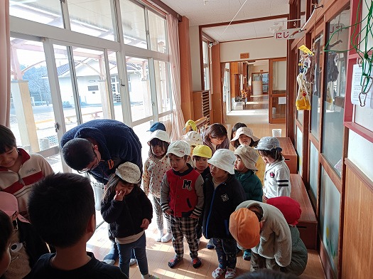 感謝の意を込めて、他のクラスや事務室、給食室に、年末のあいさつをしました。