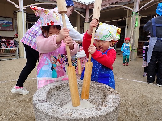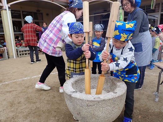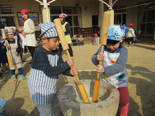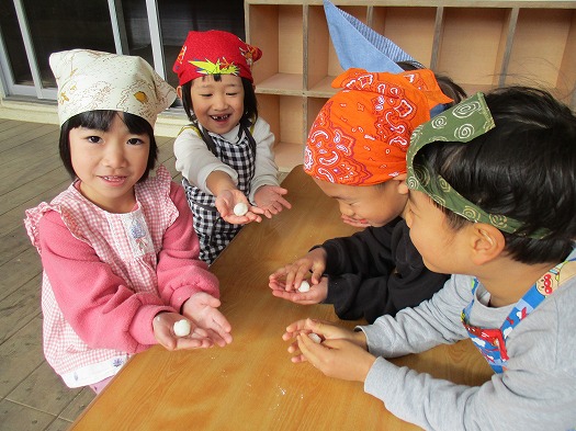「まるくなったー」とついたお餅を丸めてから食べました。