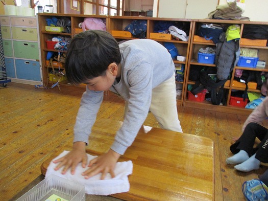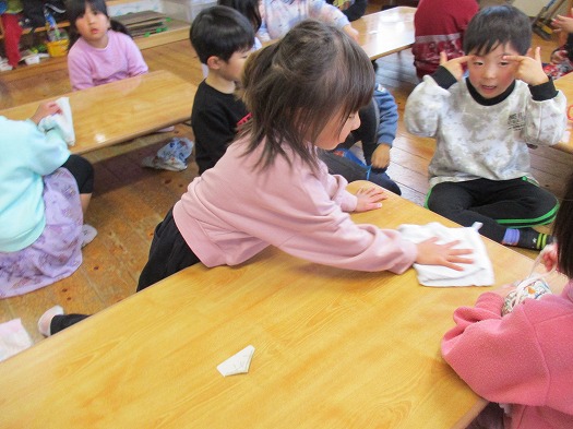 おやつの時などに机を出しているとその様子に気づくこどもたち。