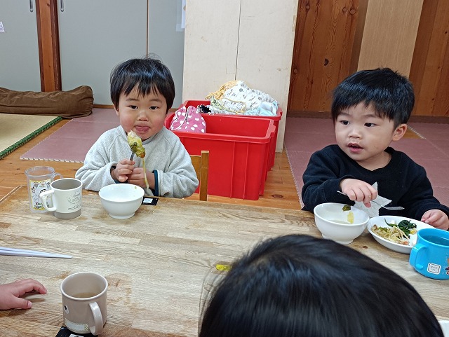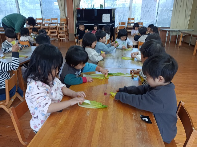 給食のおまけに食べました。美味しかったようで、普段は白菜がちょっと苦手だな…の子も、全部食べていました♪