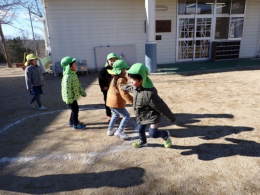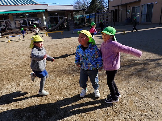 2024年02月10日 助け鬼 4歳児 ほし 今日も寒空のしたでおもいっきり身体を動かしました 助け鬼がしたい、とブームになり掛けています 戦術もまだまだでとにかく逃げる方がしたいというこどもたちです 一覧へ戻る