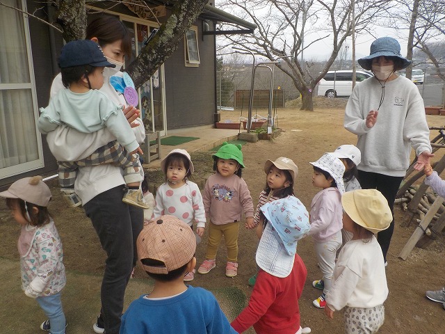 2024年02月21日 どこだ? 0歳児 はな 1歳児 ゆき 園庭を散歩しながらマーク探しをしました。 散歩をしている途中にマークを発見すると動物の名前や「○○ちゃんのマーク」などの声が聞こえてきました。 マークを見つけていくたびに大喜びのこどもたち! 見つかりにくいところはヒントを出しながら、全て貼ったものを見つけることができました。 一覧へ戻る