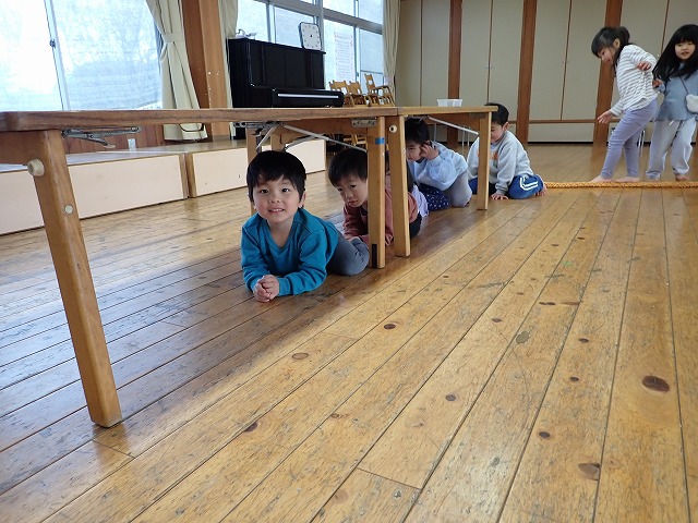 こどもたちでロープの下は海だと見立てて進んでいる姿もみられました。