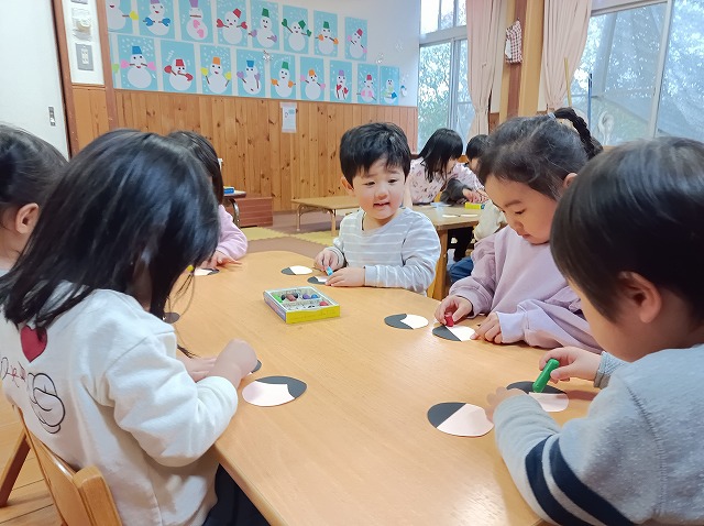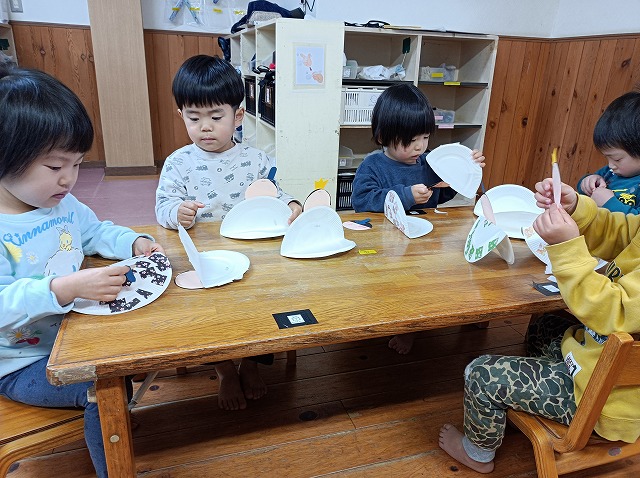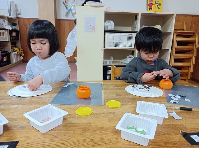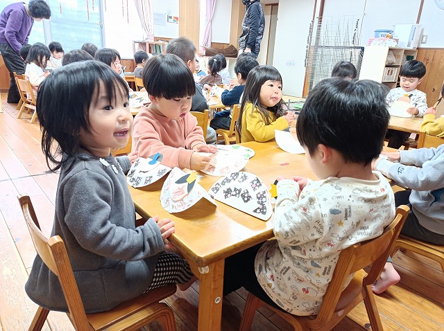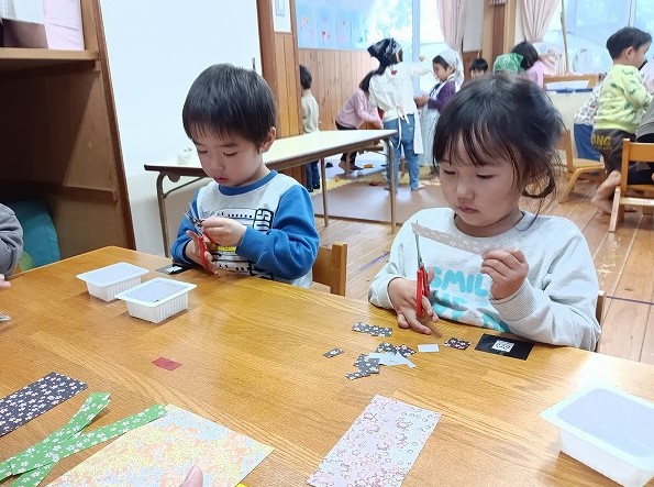 ハサミや糊を使っての製作。30人のこどもたちが一度にはできないので、少人数で少しづつ作っていきました。
